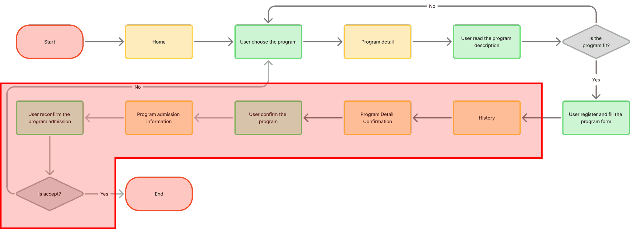 Before starting the design, I created a user flow to show how users move through the system. This helps spot confusing steps and guides the design toward a simpler, more intuitive experience.