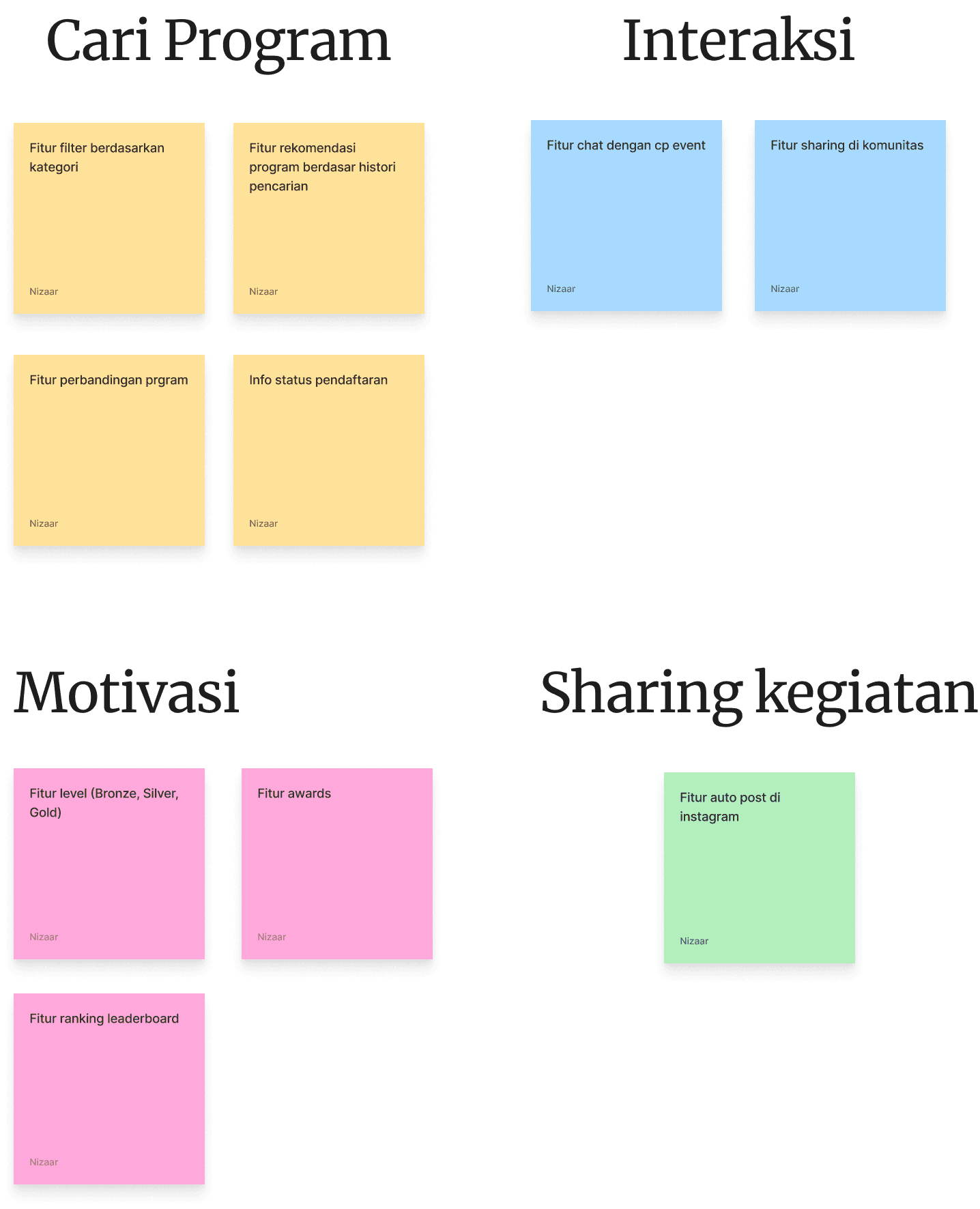 Once I had all ten ideas, I grouped them to see which ones connected with each other. Clustering them this way made the patterns clearer — which ideas solved similar pains, and which ones stood out as stronger directions.