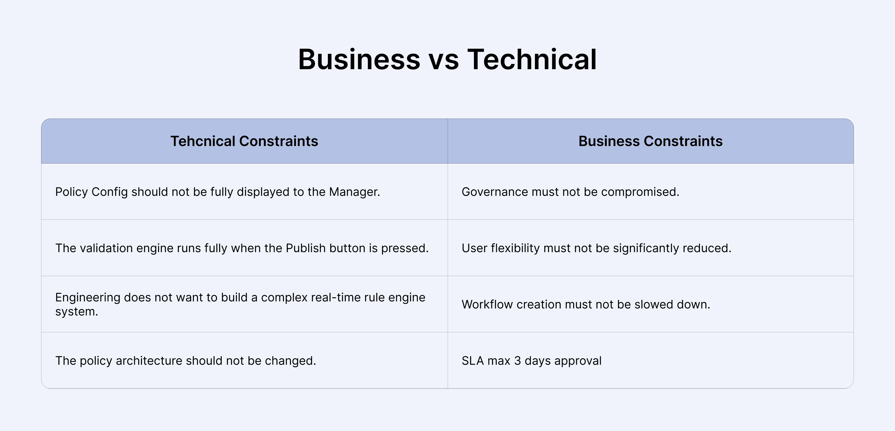 These constraints guided the design toward solutions that improve constraint visibility without modifying the underlying policy engine.