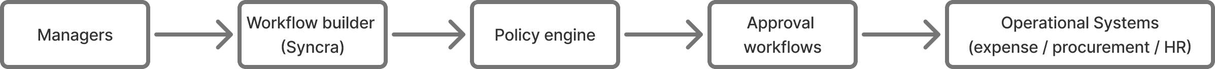 Syncra is an internal platform that allows managers to create approval workflows for operational processes such as expenses, leave request, procurement, and promotions. Each workflow must comply with company-specific approval policies. These policies define rules such as required approvers, approval hierarchy, and department-specific restrictions.