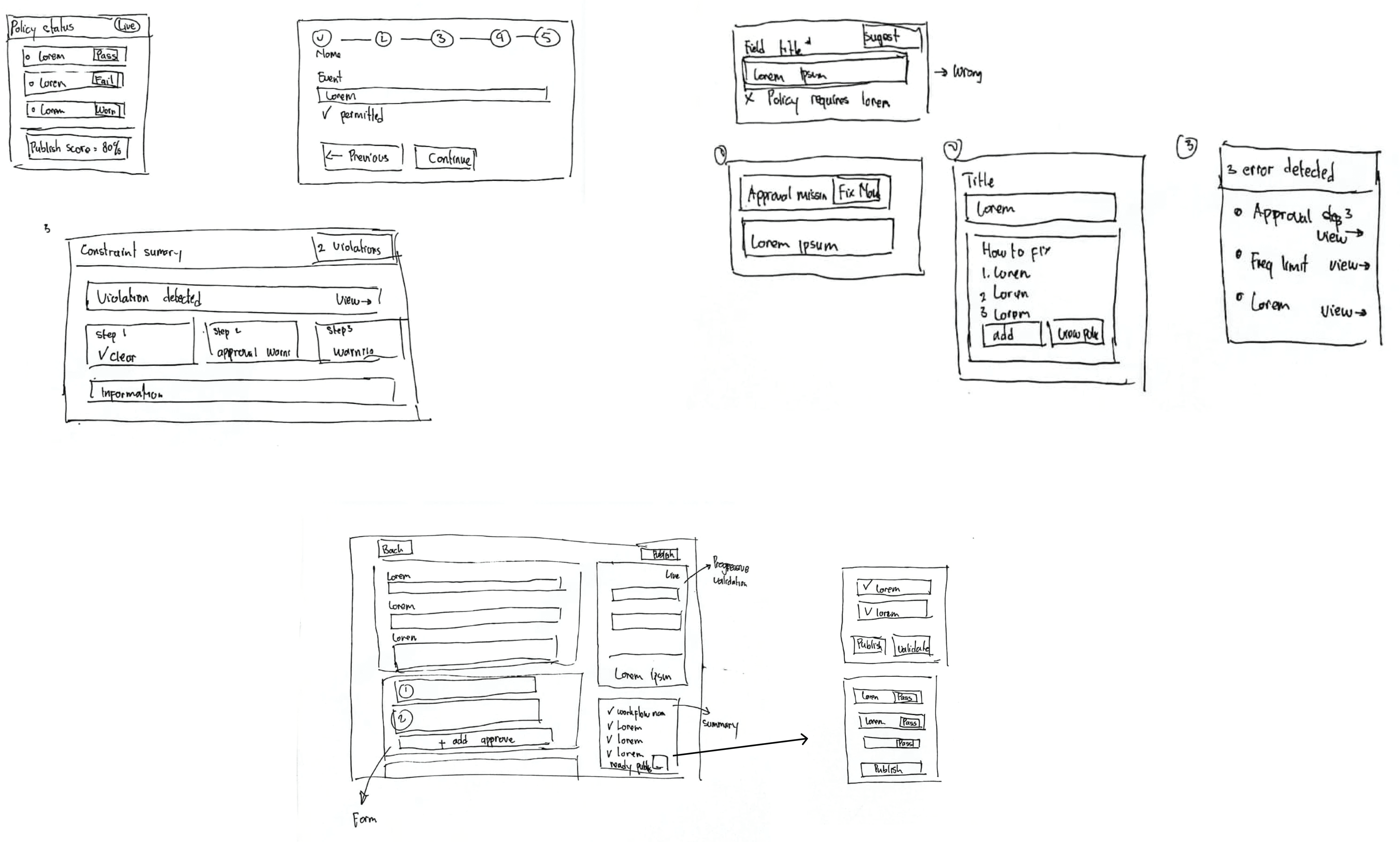To address these limitations, I explored different interaction models that could better integrate policy constraints into the workflow creation process.
