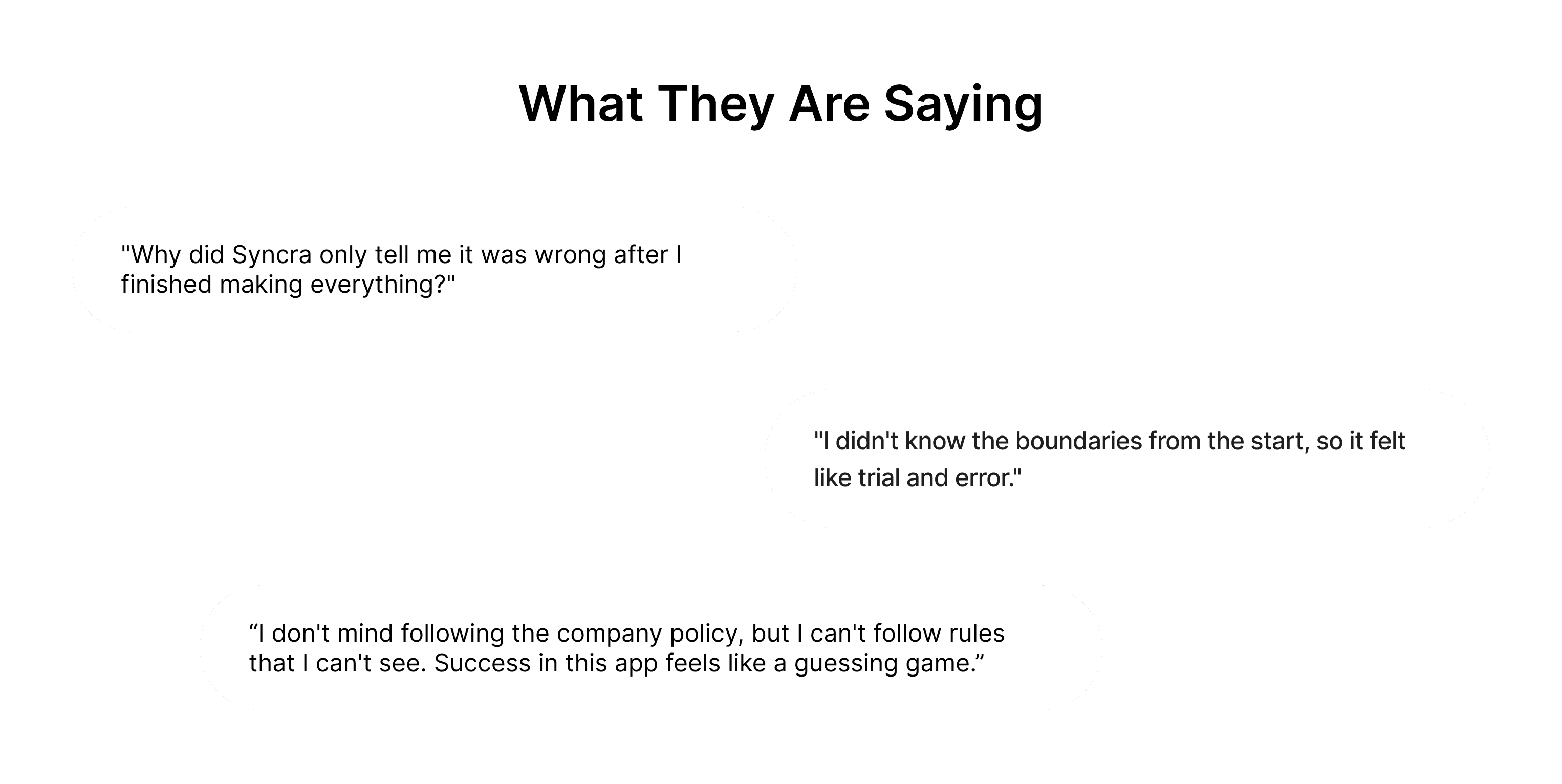 Syncra is an internal platform used by managers to create approval workflows for requests such as expenses, leave, procurement, and promotions. To ensure compliance with company policy, each workflow must follow specific approval rules. However, workflow publishing failures frequently occur, suggesting friction in the current creation process.
